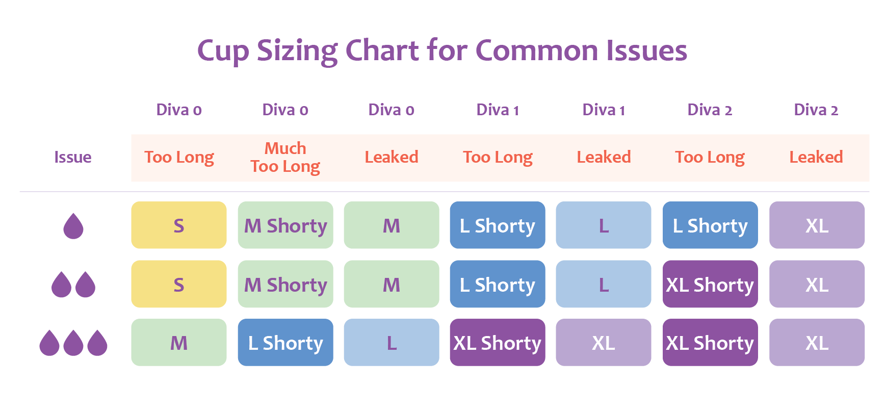 Example: Diva Cup 2 user → Try MeLuna Shorty XL. If Diva 2 also felt too wide → Try Shorty Large.